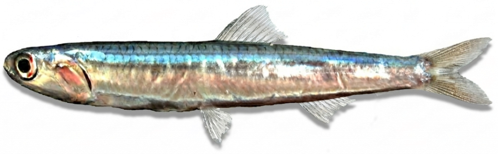Cabeza y ojos grandes. La aleta dorsal se sitúa hacia la mitad del cuerpo, ligeramente retrasado. Dorso azul oscuro y el resto del cuerpo plateado. Las escamas reflejan la luz como pequeños espejos, acentuando el tono plateado a la luz del sol.